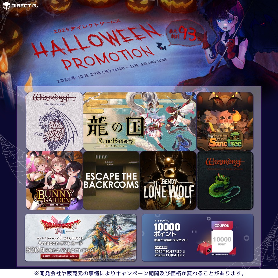 PCゲームデジタルキー公式販売サービスDIRECT GAMESにて『2025ハロウィンセールキャンペーン』を開始いたしました。